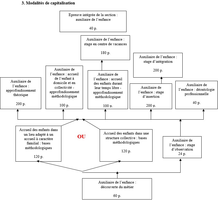 Le CESS d'auxiliaire de l'enfance (Certificat de qualification d'auxiliaire de l'enfance + complément CESS) permet de travailler à domicile, comme accueillante, dans les crèches et les structures d'accueil. Il est constitutif du titre requis pour la fonction de puériculteur/puéricultrice dans les écoles.